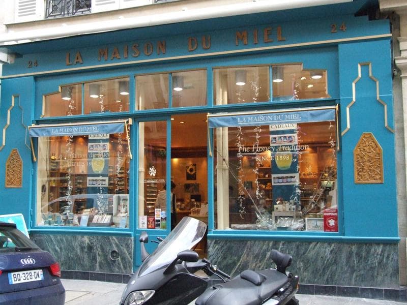 Fondée en 1898, la Maison du Miel s'installe vers 1930 en rez-de-chaussée d'un immeuble du 19e siècle. La devanture est réalisée en bois sculpté peint en faux marbre et doré. Les piédroits sont ornés de bas-reliefs à motif d'abeilles sur fond de soleil. Le magasin, dont l'intérieur est sans intérêt exceptionnel, conserve toujours la même fonction.