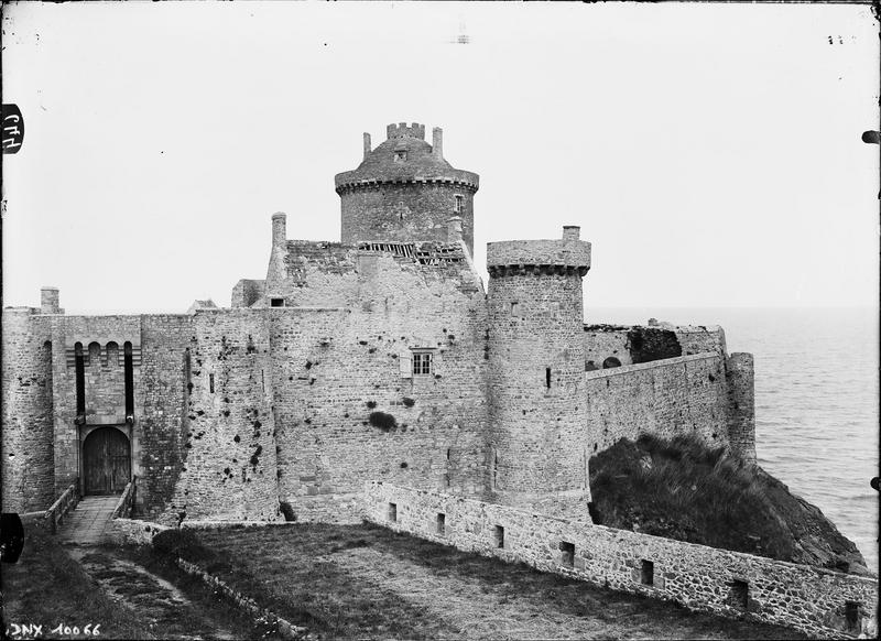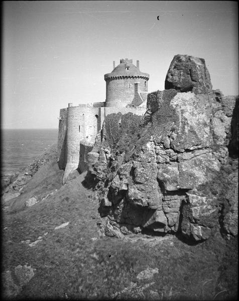 Ouvrage qui, autrefois, défendait les atterrages de l'embouchure de la Rance, renfermant des constructions des 13e et 14e siècles. Une tour aurait été construite à cet emplacement dès 937 par Goyon, seigneur de Matignon. Au Moyen-Age, une petite forteresse dite "Château de Roche-Goyon" devait s'y dresser. Louis XIV acheta ce château en 1689 et le fit transformer en respectant les constructions antérieures. Le fort est séparé de la terre par deux crevasses que des ponts permettent de franchir. Le premier pont est défendu par une barbacane ou avancée. Le second, dit Grand pont, donne accès à la porte. La fortification comprend, en dehors des murailles et du corps de garde, une enceinte flanquée de tours anciennes. A l'intérieur se trouvent un bâtiment qui servait de caserne, et une tour ovalisée pouvant dater du 14e siècle. La construction est en granit.