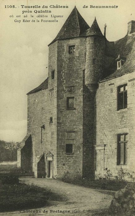 Le château de Beaumanoir, siège d'une des plus hautes seigneuries relevant de Quintin, a été construit au 15e siècle, puis agrandi aux siècles suivants. Par suite d'abandons successifs, notamment au moment de la Révolution, la propriété est en mauvais état, et, en 1895, les propriétaires décident de la restaurer. La conception de l'aile nouvelle et des communs est due à Auguste Courcoux, architecte d'origine briochine, tandis que l'aménagement du parc, de style néogothique, est l'oeuvre du paysagiste Charles Singlis. L'ensemble est prévu pour assurer l'autonomie du domaine et le confort de ses habitants (environ 30 à l'époque) , suivant les normes hygiénistes les plus modernes héritées de l'Angleterre.
