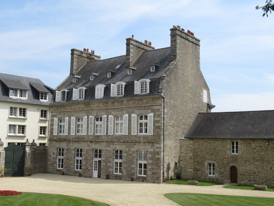 L'hôtel a été édifié à la demande de Jean-Baptiste Veillet-Dufrêne qui dirigeait un important comptoir de ventes de toiles. L'aspect général du bâtiment, avec ses hautes cheminées, rappelle les malouinières. Les pièces sont ornées de boiseries réalisées à l'époque de la construction par des artisans ébénistes locaux. Ces boiseries intérieures témoignent de l'opulence régionale au 18e siècle.