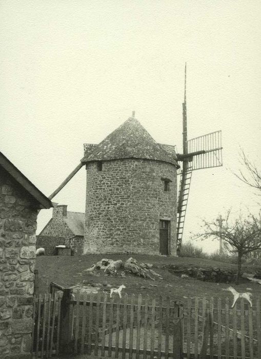 Ce moulin à vent, édifié en 1843, est de type tour, en granit, à couverture en bardeau de châtaignier. Ce moulin à farine, équipé d'ailes à traverses, et disposant de deux meules, d'une bluterie, d'un tarare et du cabestan, encore conservés, fut associé à la fin du 19e siècle à une machine à vapeur, moteur auxiliaire que remplaça une nouvelle machine vers 1929, modèle Nacivet Duillon à deux cylindres. Stoppé depuis 1954, le moulin fait l'objet de visites.