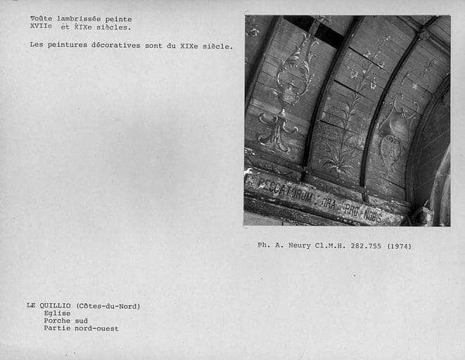 © Monuments historiques, 1992. Cette notice reprend intégralement les termes de l’arrêté de protection au titre des Monuments historiques. Elle répond à l’obligation réglementaire du ministère de la Culture d’établir la liste générale des immeubles protégés (art. R. 621-80 du Code du patrimoine). Elle est donc opposable et fait foi juridiquement. Aucune copie numérique ou papier ne sera fournie par courrier ni courriel. Le dossier de protection complet et l’arrêté sont consultables uniquement sur place, dans la salle de lecture de la Médiathèque du patrimoine et de la photographie (MPP), à Charenton-le-Pont (Val-de-Marne).