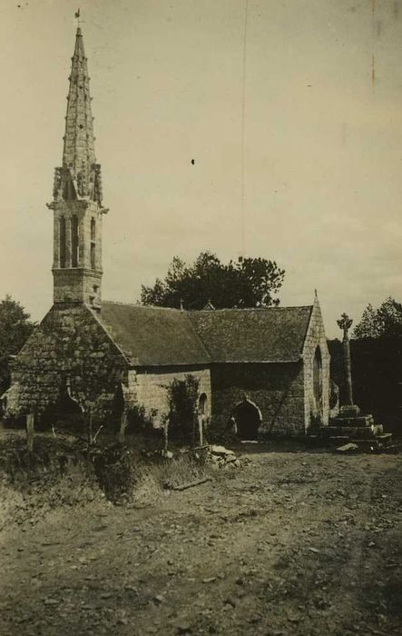 Edifice de plan rectangulaire, du début du 16e siècle, complété par un bras de transept au sud. Le clocher à flèche, posé sur le pignon de la façade, est un bel exemple du type ajouré cornouaillais. Des fragments de vitraux de l'Annonciation et de la Passion se trouvent dans la fenêtre flamboyante du chevet. La chapelle, appareillée de granit blanc, est couverte d'une charpente apparente.