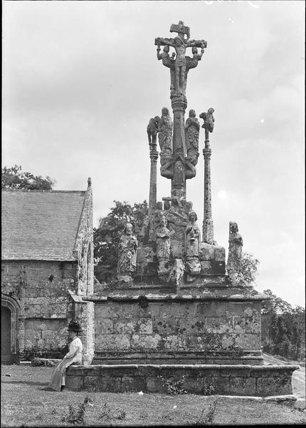 Avec son calvaire (daté de 1556) et sa fontaine, la chapelle est un exemple de petit ensemble breton. C'est une chapelle en granit à chevet plat peu saillant, grand transept et nef sans bas-côté. Le petit clocher se termine par une flèche octogonale en pierre reposant sur un pilier carré, porté par un socle carré soutenu par un arc à l'intersection de la nef et du mur ouest du transept. Le calvaire repose sur un socle triangulaire. Sur un piédestal triangulaire, deux masses triangulaires se compénètrent. Autour, sont rangés les douze apôtres. Au-dessus, se dresse la croix du Christ accostée de celles des larrons.