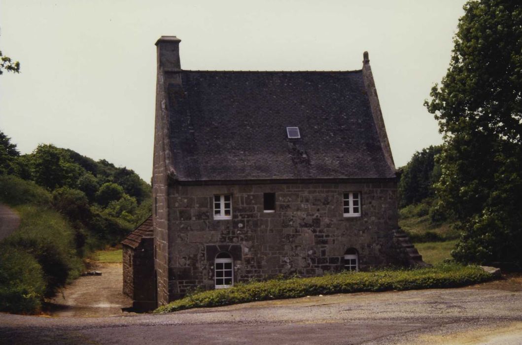 Ce moulin, non daté, date du 16e ou du 17e siècle. De plan rectangulaire massé, il comporte un étage carré. La construction est en pierre de taille de granit, renforcée par des contreforts. La cheminée signale que le moulin contenait une pièce d'habitation. La couverture est en ardoise ; les pignons découverts et le larmier de la souche de cheminée indiquent que la couverture originelle était le chaume. L'élévation sud comporte une adjonction plus récente, à couverture en tuile mécanique. Mis à ferme, ce moulin était habité par le meunier et sa famille. Il constitue un édifice intéressant par la qualité et l'état de conservation du gros-oeuvre et par son volume général intégralement préservé.