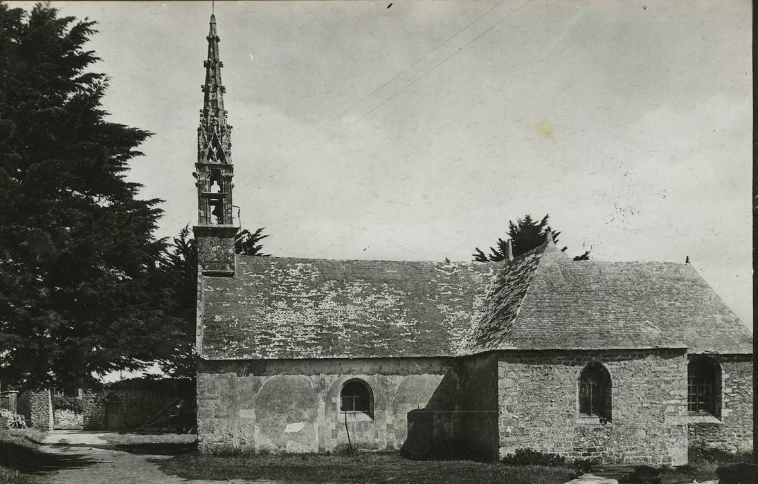 De la chapelle élevée au 16e siècle, ne reste que le clocher. Nef, transept et abside ont été reconstruits de 1745 à 1747. Le clocher est entièrement ajouré, orné de pinacles, de gâbles et de crochets. La chapelle a vraisemblablement été fondée au 13e siècle. Le calvaire date du 15e siècle. Sur la place, le calvaire en granit est supporté par trois gradins. En 1925, le Christ a été remplacé par un crucifix en fer. Au sommet du fût se trouve une Vierge Mère. L'autre côté présente une tête de mort et deux os en sautoir. Ce calvaire a été en partie détruit à la Révolution. La branche transversale de la croix portait des doubles statues, posées au moment de la protection à l'entrée du cimetière.