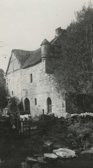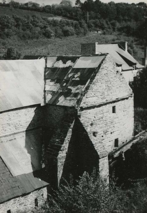 Présumé dater du de la fin du 16e siècle, ce moulin à eau est d'origine sans doute antérieure et de fondation monastique. Il se trouvait sur l'ancienne paroisse de Locamand. Son volume, ses matériaux, deux tourelles d'angle et sa position encaissée, lui confèrent une grande qualité monumentale et l'aspect d'un manoir breton. Moulin à farine, il est bâti en granit en moyen appareil dans les parties basses, et l'architecture, de plan rectangulaire, est à un étage avec d'étroites ouvertures et des portes chanfreinées. Habité par la famille du meunier, il s'accommodait, au début des années 1930, d'une couverture en chaume. Le moulin se raccorde à un canal de dérivation de près de 800 mètres de longueur, à environ 6 km de la source. Son dispositif hydraulique bien préservé date de 1779 et de 1792 (inscriptions en français dans le granit monolithe du noc) ; deux fortes roues chevillées en chêne, de dessus, externes, de 3 m de diamètre, sont placées de part et d'autre des façades barlongues. Elles entraînaient deux paires de meules et un cylindre, installé après la guerre.