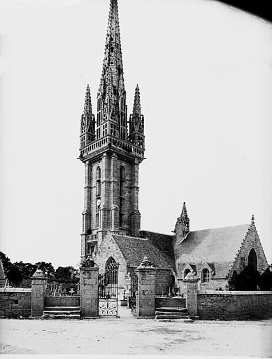Selon la légende, une première église aurait été bâtie au 6e siècle par le comte Even, en remerciement d'une victoire contre les Danois et Normands. L'église est de style flamboyant. Le portique, dans le goût du 16e siècle, contient les douze statues des apôtres. Le clocher porte la date de 1595.