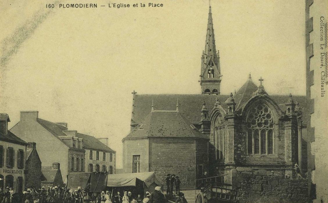 Bretagne ; Finistère (29) ; Plomodiern ; place de l'Eglise