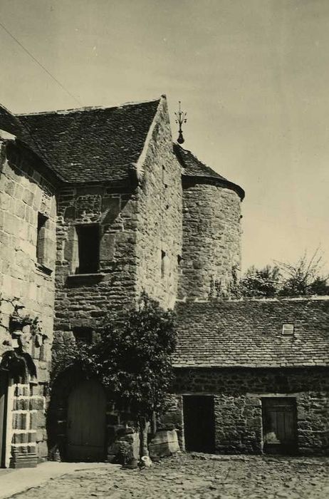 L'ancien manoir se compose de deux bâtiments en retour d'équerre flanqués, dans l'angle extérieur, d'une tour circulaire à toit conique. Au sud, la façade est percée d'une porte en accolade. L'archivolte des voussoirs est surmontée d'un fleuron supportant un écu. L'accolade est flanquée de deux pilastres à pinacle supportant chacun un écu. A l'exception d'une fenêtre en accolade, les autres ouvertures ont été modifiées. Le retour du bâtiment ouest présente une porte voûtée en plein cintre, surmontée d'une petite fenêtre en accolade.