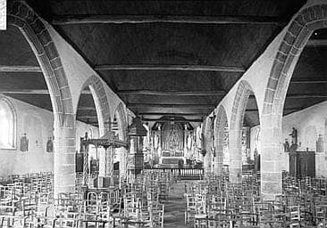 L'église Saint-Yves, reconstruite sur la base d'un édifice antérieur datant de l'époque médiévale, porte l'empreinte des transformations qui l'ont modifiée à partir de 1649. Sans transept, la nef flanquée de deux bas-côtés et d'un porche sud fortement saillant, ouvre sur un choeur à chevet plat sur lequel est venue se greffer en 1651 une sacristie semi-octogonale. Le caractère marquant de l'église est la taille de son clocher, démesuré par rapport à la hauteur du reste de l'édifice. Frappé par la foudre en 1847, il a été restauré peu après.