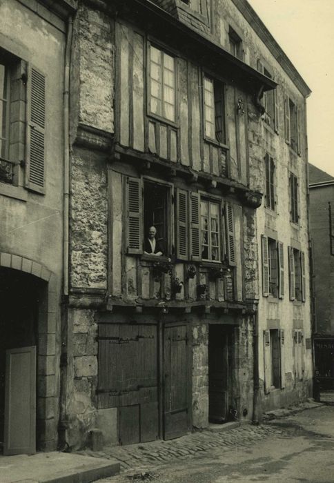 Maison avec façade en pans de bois, appartenant au centre ancien de la ville.