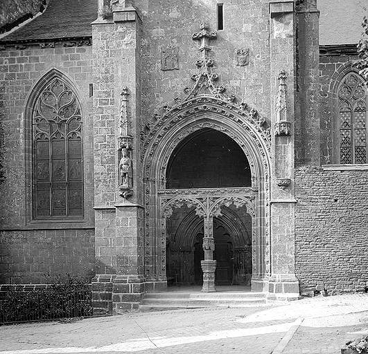 Eglise commencée au 13e siècle, dont le choeur, les porches latéraux ainsi que la tour datent du 15e siècle. La nef conserve sa disposition primitive. Le porche méridional est tapissé à l'intérieur de niches ornées. Le porche nord est divisé par deux arcades jumelles appuyées sur un pilier qui soutient un bénitier et que couronne un dais. Le tympan de la grande arcade est sculpté d'écussons et le gâble orné de crossettes. Les porches sud et nord sont surmontés d'une chambre accessible par un escalier latéral.