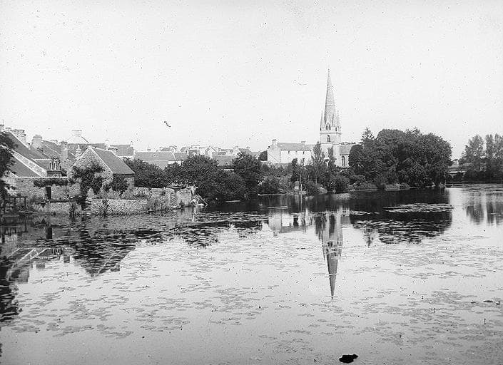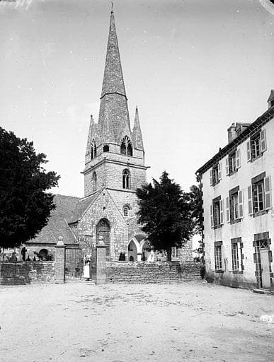 Eglise probablement construite au 13e siècle, possédant un clocher des 13e-14e siècles dont le tracé est différent de celui des clochers bretons, notamment en ce qui concerne la naissance et les amortissements de la flèche. L'édifice était entouré d'un cimetière et de son calvaire.