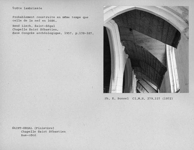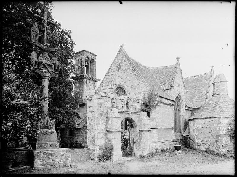 La chapelle Saint-Sébastien fut édifiée au 15e siècle pour conjurer la peste ; elle occupe le centre d'un enclos où sont absentes les structures liées à la vie paroissiale : il n'y a ni ossuaire, ni cimetière, ni fonts baptismaux. De plan en croix latine, l'édifice a conservé la structure de la nef, le choeur à chevet plat et le bras sud du transept de la chapelle originale ; le bras nord et le bas-côté nord ont été reconstruits au 16e siècle, le bas-côté sud et le clocher mur au 17e siècle, la sacristie octogonale ayant été rajoutée au 18e siècle. La sobriété de l'architecture contraste avec la richesse de la décoration du choeur que domine une poutre de gloire sculptée.