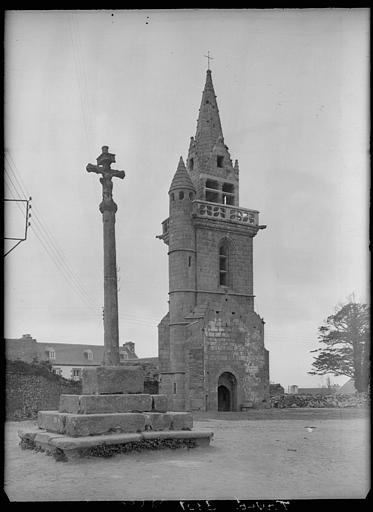 L'ancienne église a été remplacée par une nouvelle église. Du 15e siècle ne subsiste que le clocher. La tour carrée se termine par un étage percé de quatre baies que couronne une balustrade portée en encorbellement. Au-dessus, s'élève en retrait le campanile dont les cloches prennent appui sur trois piles parallèles de granit. Ces piles se terminent par des pignons donnant naissance à une flèche octogonale.