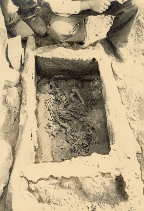 Le tumulus se trouve sur un point culminant dominant la baie. Il est entouré de sable sans doute transporté par un séisme. Certains crânes trouvés dans les tombes au début du 20e siècle, paraissaient différents de la morphologie humaine actuelle. Des silex taillés ont également été trouvés.
