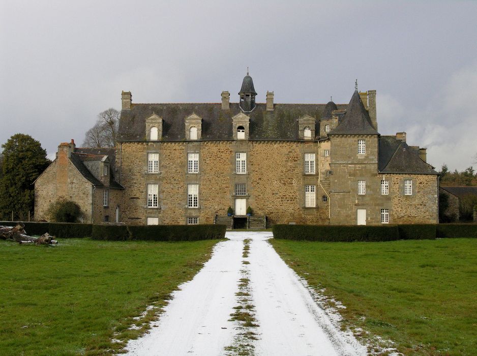 A l'époque où Jean Sans Terre détruisait les dépendances du diocèse de Dol, est entreprise la construction d'un édifice laïc près des bâtiments du prieuré de la Chapelle aux Filtzméens, qui avait déjà subi des destructions. Cet édifice devait offrir aux moines une protection. L'ensemble du château actuel date du 17e siècle, avec un pavillon du 16e. Il fut remanié et mis au goût du jour au 18e siècle (1750). Les boiseries sont d'une facture Louis XV. Le colombier a conservé son état du 17e siècle, avec trois mille niches et une échelle tournante. Le château et les bâtiments qui l'entourent s'organisent autour de deux cours rectangulaires. Le château est prolongé par le pigeonnier et une haie de buis précédant les douves. Les bâtiments de la ferme sont rassemblés au nord du château, autour d'une cour.