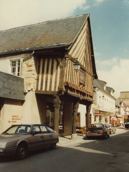 Le rez-de-chaussée formant porche est formé par une face en bois surmontée d'une sablière moulurée. Le premier étage, en pans de bois, est percé d'une fenêtre à pignon. Des consoles moulurées terminent les poteaux de bois et forment encorbellement.