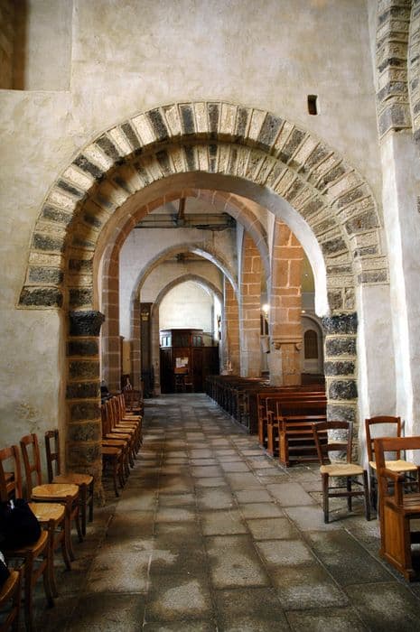 L'absidiole sud a révélé des vestiges de peinture murale, fleurettes au pochoir, remontant sans doute au 16e siècle. L'abside et le transept dateraient du 12e siècle ; la nef et le bas-côté sud du 16e siècle ; le bas-côté nord de 1889. L'église primitive (11e-12e siècle) devait se composer d'une nef voûtée en berceau, d'une croisée, surmontée d'une épaisse tour carrée dont subsiste la souche. Le choeur était en hémicycle surmonté et possédait deux absidioles dans les murs orientaux des transepts. Voûté en cul-de-four, le choeur est percé de cinq baies romanes plein cintre. Le portail principal porte la date de 1551. Le clocher a chacune de ses quatre faces percées de fenêtres géminées dont les cintres sont supportés par de petites colonnes. Les absidioles des transepts sont également en cul-de-four et percées de baies en plein cintre.