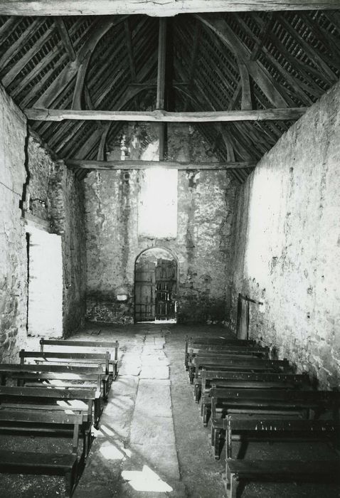 Chapelle du 13e siècle qui appartenait aux Templiers. En 1312, à la destruction du Temple, elle passe aux Hospitaliers qui édificent probablement le bras sud. Restes de peintures murales sur le mur du chevet, au-dessus et dans les ébrasements de la fenêtre. A la fin du 16e siècle, le manoir du Temple est ruiné par les guerres civiles. Après la Révolution, l'édifice est transformé en hangar agricole.
