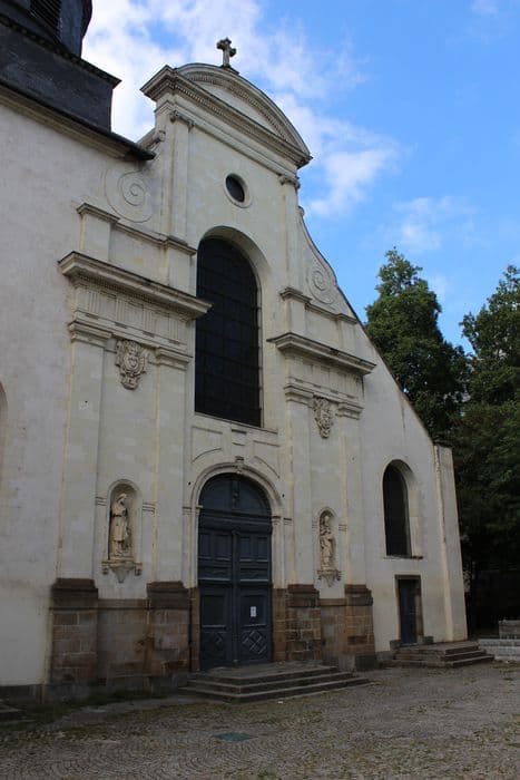L'église actuelle, ancienne chapelle du couvent des Augustins, a été édifiée à la place d'une ancienne chapelle, et bénie en 1700. C'est un édifice de plan rectangulaire, avec un chevet à pans coupés. La façade principale superpose deux ordres architecturaux, dorique et ionique. A gauche de la façade s'élève une tour carrée terminée par un dôme surmonté d'un campanile arrondi.