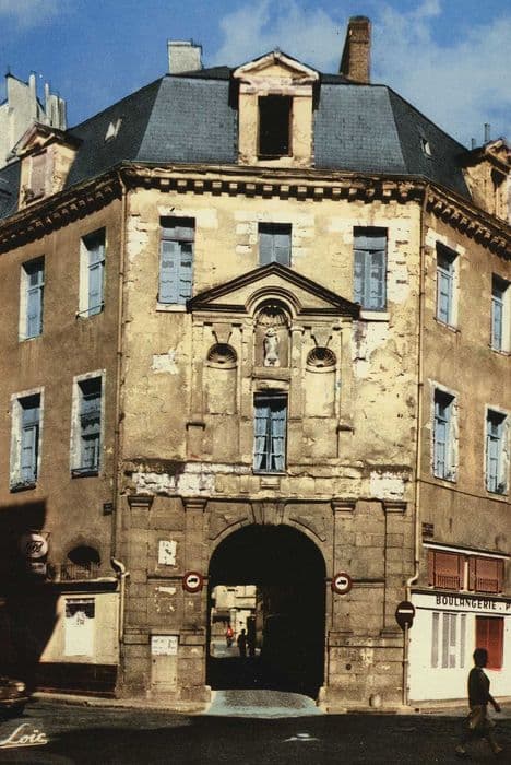 L'immeuble présente un pan coupé architecturé datant de 1666. Le portail d'entrée s'ouvre sous l'angle à pans coupés et se compose d'une baie en plein cintre, ornée d'une clé de voûte saillante et accostée de chaque côté de quatre pilastres doriques. Au-dessus s'étend une frise en pierre blanche, ornée de modillons, de triglyphes et de gouttes. Trois niches cintrées sont creusées entre les pilastres.