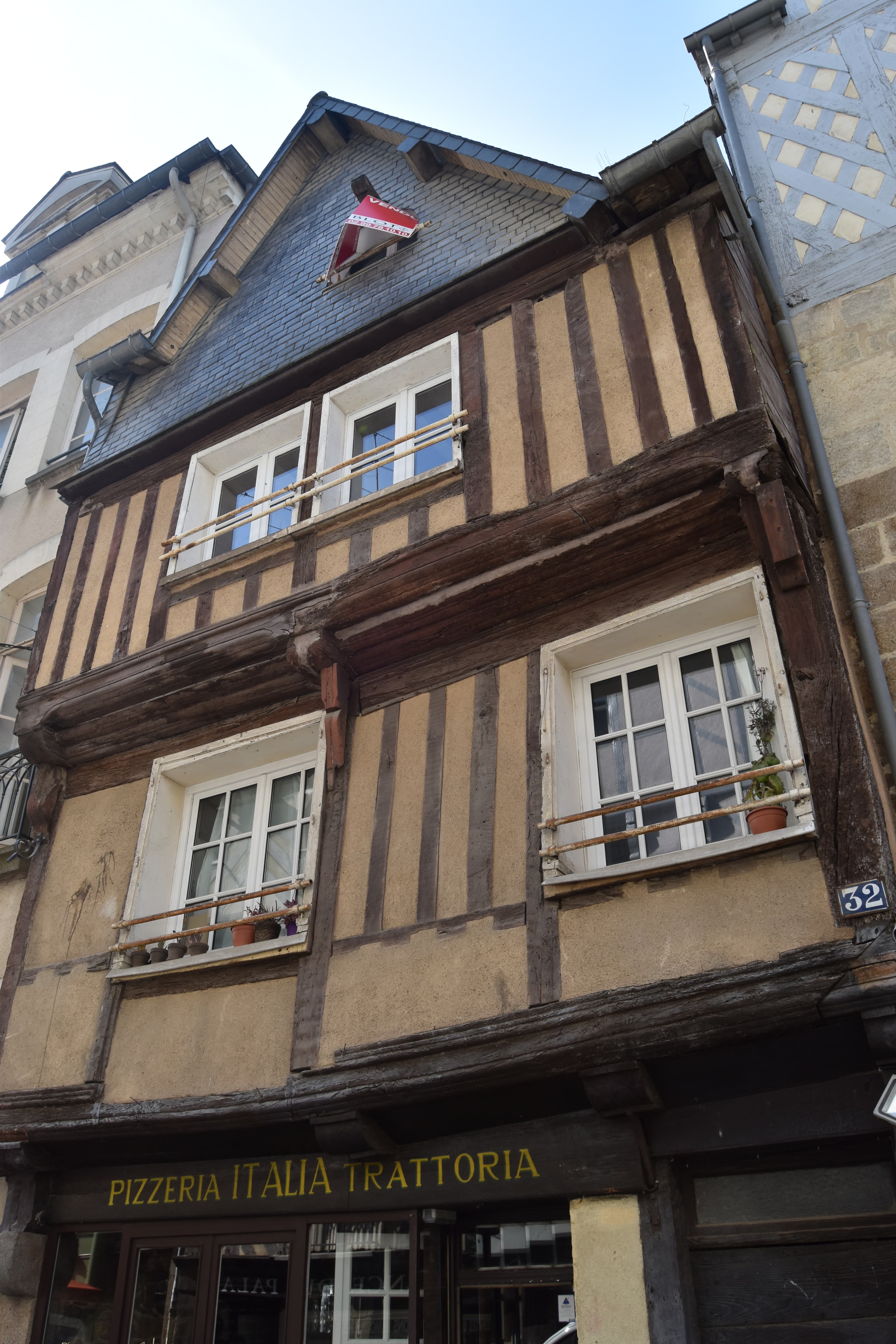 Petite maison présentant une toiture en pignon sur rue. L'avant-solier du rez-de-chaussée reste fléchi. La silhouette et les étages en encorbellement très prononcé lui donnent un caractère moyennageux.