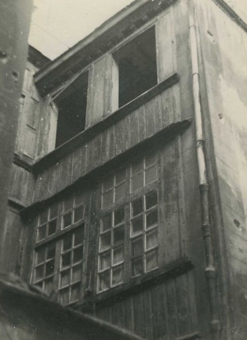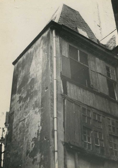 Cette maison faisait partie de l'enceinte primitive. C'est l'une des deux maisons à façade en bois subsistant encore dans la ville. Une niche d'angle présente une coquille au sommet et une base terminée par une tête humaine.