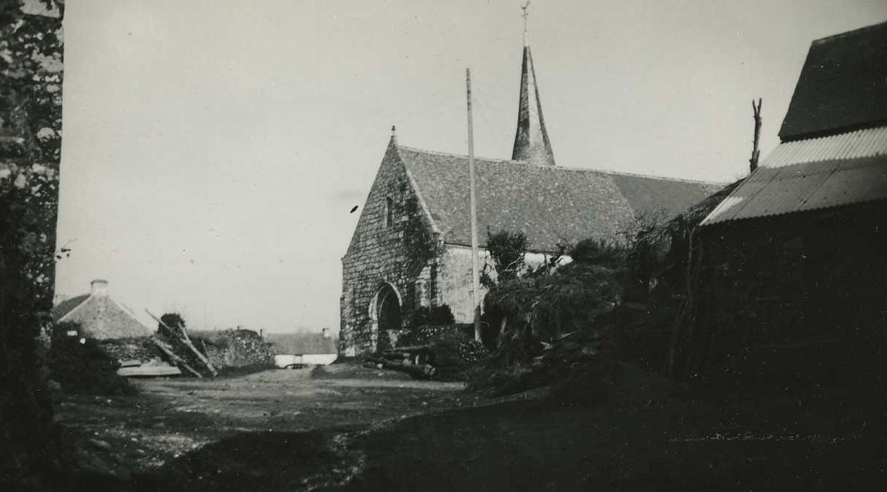 Chapelle de plan en T, ayant appartenu aux Templiers puis aux Hospitaliers. C'est un édifice d'origine romane, composé d'une nef avec transept et bas-côté au nord. Le transept sud s'aligne avec le chevet ; celui du nord est en retrait. Le bas-côté comporte deux arcades plein cintre sur nef et deux autres dans le sens transversal. La travée ainsi obtenue se prolonge comme tour et est surmontée d'un clocher conique à la base et se terminant en pyramide. Huit autels paraissent remonter au 13e siècle. L'édifice a été agrandi et remanié au 17e siècle (date de 1627 ou 1629 inscrite sur un linteau).
