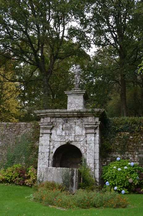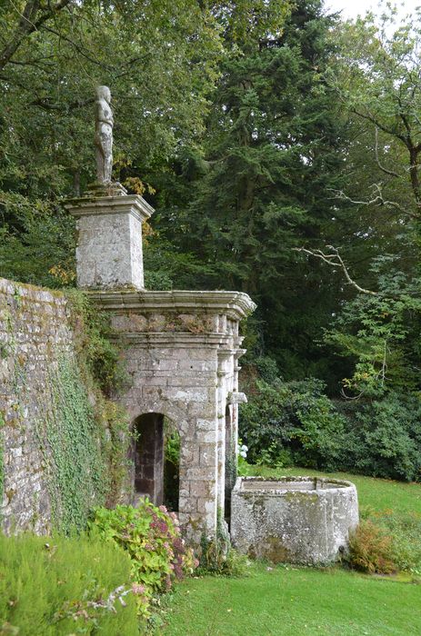 Statue d'époque romaine érigée sur un socle dominant un motif formant porche (construction datée de la fin du 17e siècle). Un ordre dorique encadre l'arc central. Une cuve en granit tient lieu de fontaine. Cette statue, qui remonterait à l'an 49 avant JC, est un monolithe de 2, 20 mètres de haut. La vénus est nue et coiffée d'un bandeau dont les deux ailes pendent à l'arrière. Des inscriptions romaines sont gravées sur le piédestal. La statue est apportée à Quinipily en 1696. Elle se trouvait auparavant à Castenec, sur les lieux d'un ancien camp romain. En 1671, des missionnaires firent précipiter la statue dans la rivière pour mettre fin aux pratiques qu'elle générait. Mais à la suite d'événements défavorables que les paysans attribuaient à cette noyade, la statue fut réinstallée.