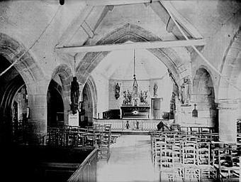 Edifice en forme de croix latine, fortement remanié au cours des siècles. Le transept a été doublé d'épaisseur. Une sacristie moderne a été ajoutée contre le choeur. La nef est flanquée de bas-côtés séparés de la nef par des arcades reposant sur des piliers cylindriques octogonaux. Choeur polygonal. Fragments de vitraux du 16e siècle représentant une Annonciation, et une Vierge au pied de la croix en compagnie de Saint-Jean et de Saint-Pierre. Le pignon de la nef est percé d'une porte géminée en anse de panier, surmontée d'accolades très décorées de fleurons et de crochets. £