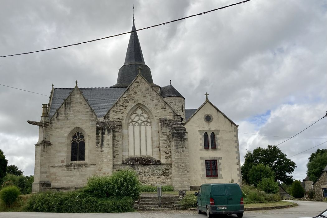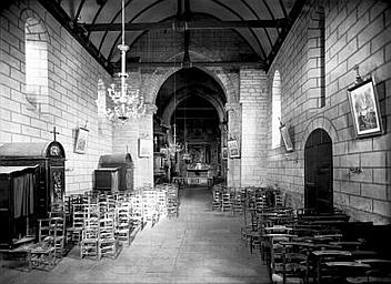 L'ensemble de l'édifice, de plan en croix latine, semble remonter au 11e siècle. Les murs sont en blocage de schiste et de granit mélangés. Les contreforts semblent avoir été rapportés postérieurement. Le plan comportait une nef sans collatéraux, éclairée par de petites fenêtres en plein cintre, largement ébrasées. Le transept à deux croisillons flanqué à l'angle nord-est d'une tourelle contenant l'escalier de la tour qui surmontait la croisée, a vu ses quatre arcs plein cintre remplacés, à l'époque gothique, par des arcs aigus. Les chapiteaux à crochets et les bases à socles surélevés, moulurés de tores plus ou moins aplatis, dénotent la fin du 13e ou le début du 14e siècle. Choeur et façades du croisillon sud remaniés au 16e siècle avec adjonction d'une chapelle au sud du choeur.