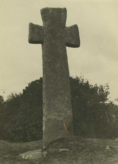 Type de croix du haut Moyen-Age, plate à courts bras légèrement pattés. Elle se situe sur le chemin menant aux chapelles Saint-Michel et Saint-Marc.