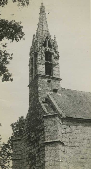 Chapelle en forme de croix latine avec petit clocheton à jour. Fenêtres à meneaux. A l'intérieur, dans le transept sud, une inscription sur sablières mentionne l'année 1686. Les marches d'accès aux autels sont sculptées. Le choeur conserve des boiseries abimées. Sous les pinacles d'angle, les gargouilles représentent les symboles des Evangélistes.