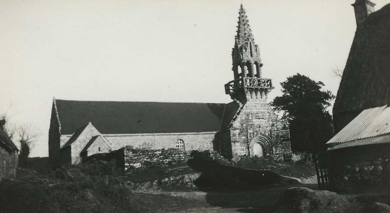 La légende fait remonter son origine aux Templiers, mais elle doit plutôt avoir été construite par les Hospitaliers qui avaient, à la fin du 15e siècle, un hôpital à Saint-Yves, dont il ne subsiste rien. La chapelle est rectangulaire. Dans son mur nord, une large arcature la met en contact avec une autre chapelle également rectangulaire, dédiée à la Sainte Trinité. Les deux chapelles réunies forment un plan en T. Un clocher à jour surmonte le pignon de la nef. De légers corbelets supportent le chemin de ronde du beffroi protégé par une fine balustrade de granit à jour, formée de virgules ou de flammes. La chambre des cloches est couronnée par une flèche en granit avec crochets. Au-dessus du clocher, une grande porte d'entrée en forme d'ogive flanquée de contreforts.