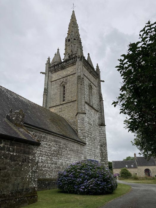 Chapelle en forme de croix latine, construite en garnit, avec voûtement en bois. Porche d'entrée avec portes géminées sur le pignon sud du transept. Vitraux du 16e siècle. La flèche du clocher se dégage octogonale avec, en amortissement sur la galerie, des petits clochetons sur colonnettes. La fontaine porte l'année 1574. C'est un édicule en granit, placé au milieu d'une petite enceinte formée par quatre murs. Il se compose d'une niche sous laquelle jaillit la source, qui s'encadre dans un pignon décoré de crochets, de fleurons et terminé par une croix.