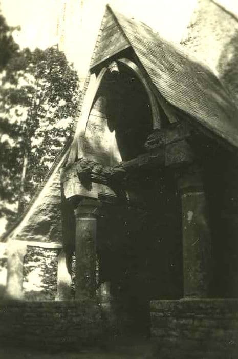 Ancienne petite chapelle castrale dont le porche est la partie la plus intéressante. La charpente est supportée par des piliers en pierre. Tirant avec figures grimaçantes. La sablière, vers le nord, est ornée d'un écusson, d'une tête de mort et de deux tibias. Vers le sud, la sablière contient des rubans et une inscription.