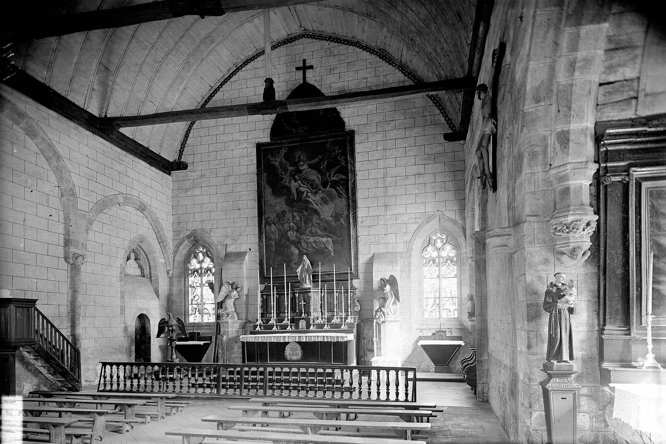 Les parties anciennes de la chapelle remontent à l'époque romane. L'édifice a été agrandi deux fois, vers les 14e et 15e siècles. La chapelle se compose de deux parties distinctes séparées par un pan de mur transversal percé de trois ouvertures ogivales. Le choeur et ses abords sont la partie la plus ancienne. Le chevet carré s'ouvre par une fenêtre flamboyante. La nef appartient au 15e siècle.