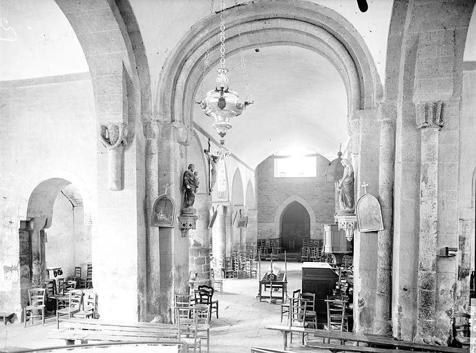 Eglise du 12e siècle, reconstruite au 19e siècle. Au 16e siècle construction du choeur et remaniement des grandes arcades ainsi que des bas-côtés. A l'origine, un clocher s'élevait sur le carré du transept, aujourd'hui disparu. Le clocher actuel date de 1899.