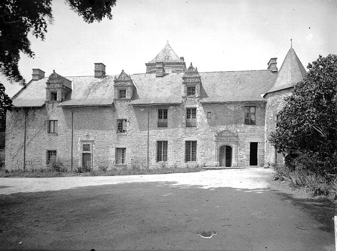 Façade avec mur en moëllon aligné, percée de larges baies simples. Une entrée avec pilastres et frontons. Trois lucarnes chargées de sculptures : les deux extrêmes ont un fronton circulaire, celle du centre un fronton rectiligne ; les pilastres sont ornés d'une succession de losanges ou de cercles.