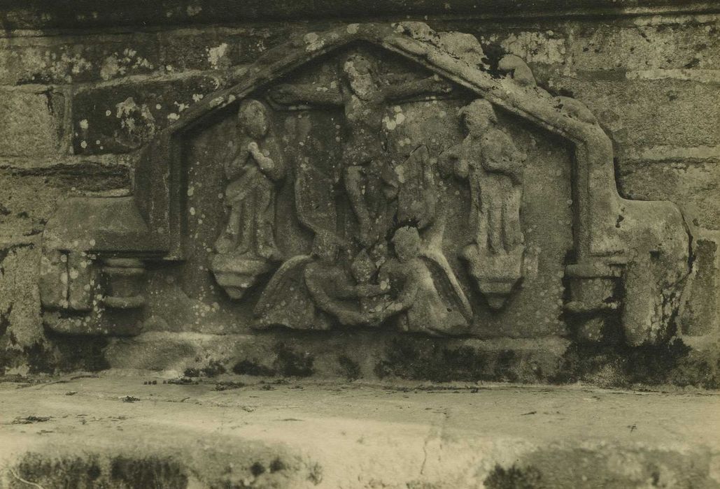 Le bas-relief représentant la crucifixion placé sur le piedestal (cad. AB 18) : inscription par arrêté du 30 mai 1927
