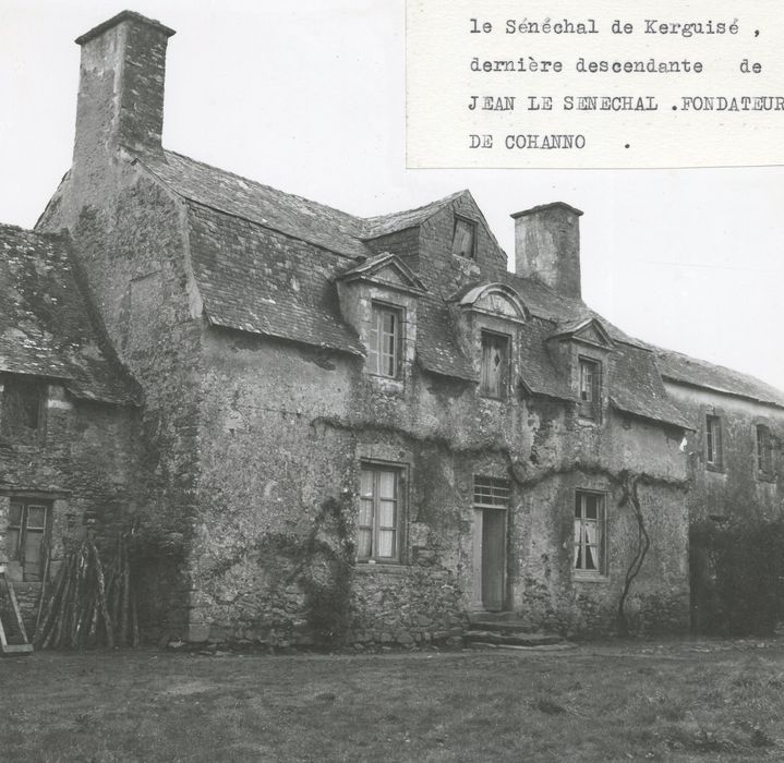 Le manoir est construit en 1676 par Jean le Sénéchal de Kerguizeh, seigneur de Kerguizec dont le manoir avait brûlé. Puits peut-être 1676. Aile de communs en retour probablement 18e siècle. Entièrement remanié en 1962.
