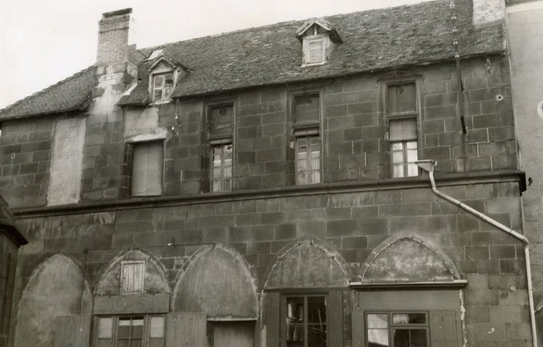 Cette maison serait peut-être l'ancienne maison consulaire ou le bâtiment capitulaire. La longue façade principale fait face à l'église. Le rez-de-chaussée comporte une rangée de cinq arcatures brisées dont il subsiste des restes de bases prismatiques situées à un mètre du sol. La séparation entre le rez-de-chaussée et l'étage est marquée par un bandeau saillant mouluré de deux tores inégaux sous chacun desquels est un filet et que sépare un large cavet. Ce corps de moulure forme l'appui des fenêtres. Sur cinq fenêtres de la façade principale, deux seulement ont conservé leur état d'origine.
