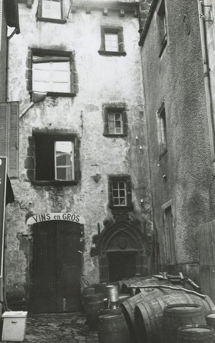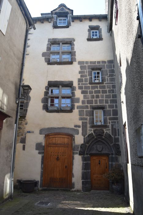 La façade de cette maison est pratiquement complète. Elle est ornée, au rez-de-chaussée, d'une porte qui a dû être ouverte à l'emplacement d'une fenêtre dont subsistent, semble-t-il, des morceaux de jambage. A côté, une porte donne accès à l'escalier à vis. Les piedroits sont ornés, à partir de bases prismatiques, de moulures également prismatiques qui se continuent le long de l'arc brisé sous lequel le tympan est sculpté d'un écu sans armoiries. L'arc brisé est surmonté d'une archivolte formée d'un larmier garni de feuilles de chêne et couronné à sa clef par une accolade. Deux petits pinacles s'élèvent au-dessus de l'archivolte. Aux étages, fenêtres moulurées. Lucarne Renaissance au pied du versant de la toiture.