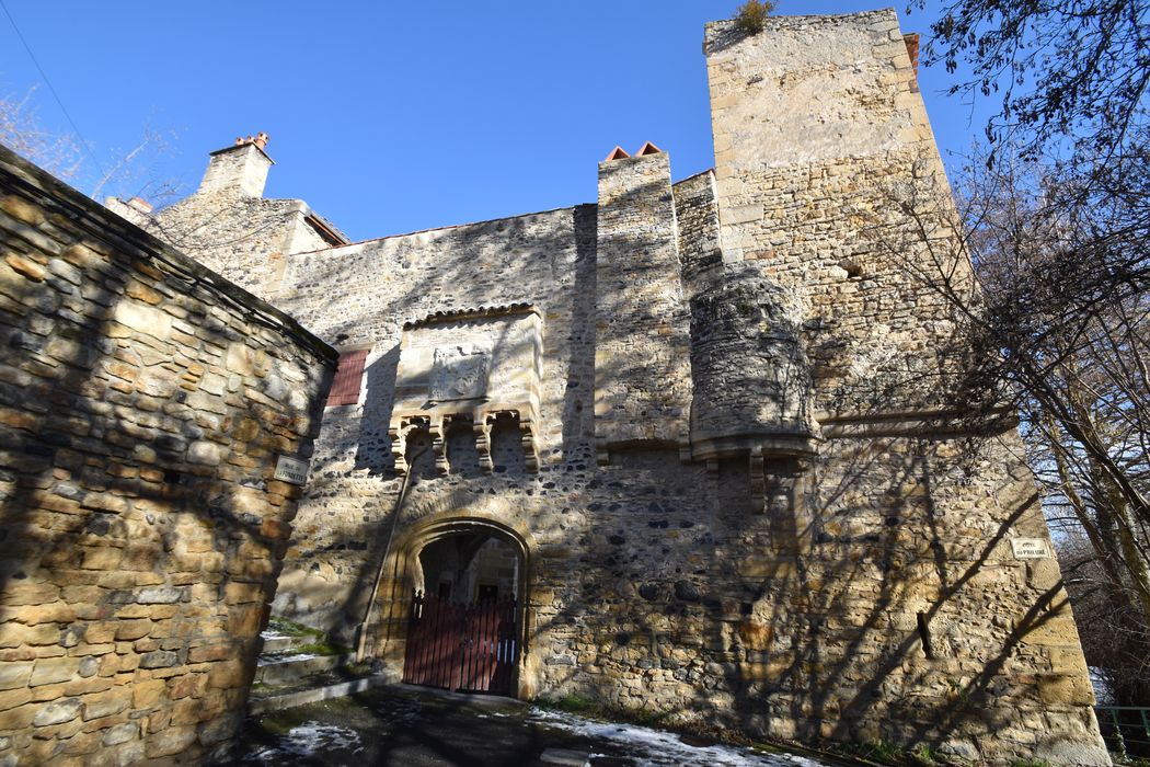 Restes, comprenant : façade Ouest avec sa porte d'entrée et son machicoulis ; tour carrée Sud-Ouest avec la salle voûtée du 1er étage ; tour ronde Sud-Est ; restes de la courtine entre ces deux tours le long de la rivière ; bâtiment à gauche de l'entrée de la cour avec sa tourelle d'escalier ; chapelle et tour à la suite vers l'Est avec son machicoulis (délimités par des teintes ocre, rouge, violet, bleu, jaune sur le plan annexé à l'arrêté) : classement par arrêté du 7 août 1926