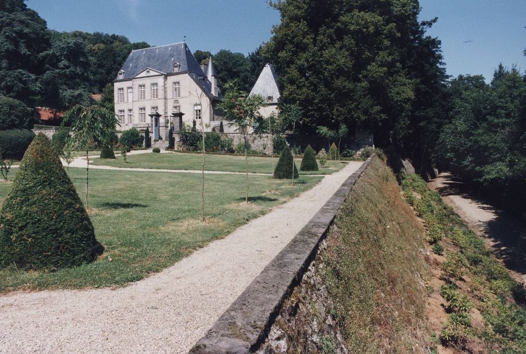 Château, y compris les pièces suivantes avec leur décor : au premier étage, salle à manger, grand salon, petit salon de musique, bureau, chambre de la grosse tour ; au deuxième étage, grande chambre, bibliothèque, petite chambre, chambre de la grosse tour ; chapelle avec ses peintures murales ; bâtiments des communs ; jardins à la française avec leurs terrasses, clôtures et pavillon (cad. E 717 à 719) : inscription par arrêté du 26 janvier 1998