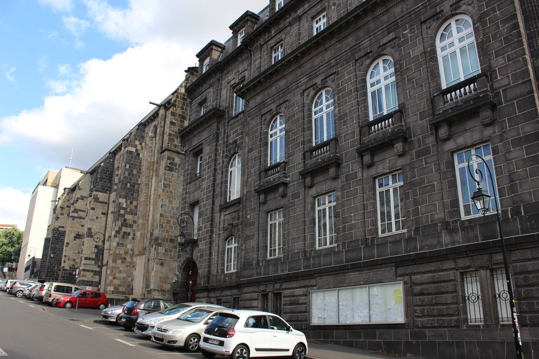 L'église des Cordeliers s'inscrit dans un groupe d'églises franciscaines à nef unique caractéristique de la pééminence de cet ordre mendiant au cours du 13e siècle en milieu urbain. En 1263, Bernard de la Tour, comte de Boulogne, fit don du terrain. La chapelle aurait été fondée en 1273. Le choeur de l'église servit de sépulture pour la famille de la Tour. Avec la vente du couvent des Cordeliers comme bien national à la Révolution, les bâtiments disparaissent peu à peu, remplacés par des constructions fonctionnelles et sans souci d'intégration. Ne reste de cet ensemble monastique, hormis une peinture murale à l'entrée de ce qui correspondait au réfectoire, que l'église. L'édifice a été dénaturé par la destruction partielle de la voûte vers 1854 ; par le compartimentage du volume pour l'installation des services d'archives en 1806 ; par des restaurations. Du décor intérieur, ne subsiste que des colonnettes et chapiteaux apparaissant par endroit. L'emplacement du jubé est discernable par quelques vestiges au rez-de-chaussée. Cet édifice reste le seul exemplaire en Auvergne du système de voûtes sexpartites. Les quelques arcades du cloître qui restent côté cour remontent au 18e siècle. En façade, percements avec deux lancettes et rosaces polylobées.