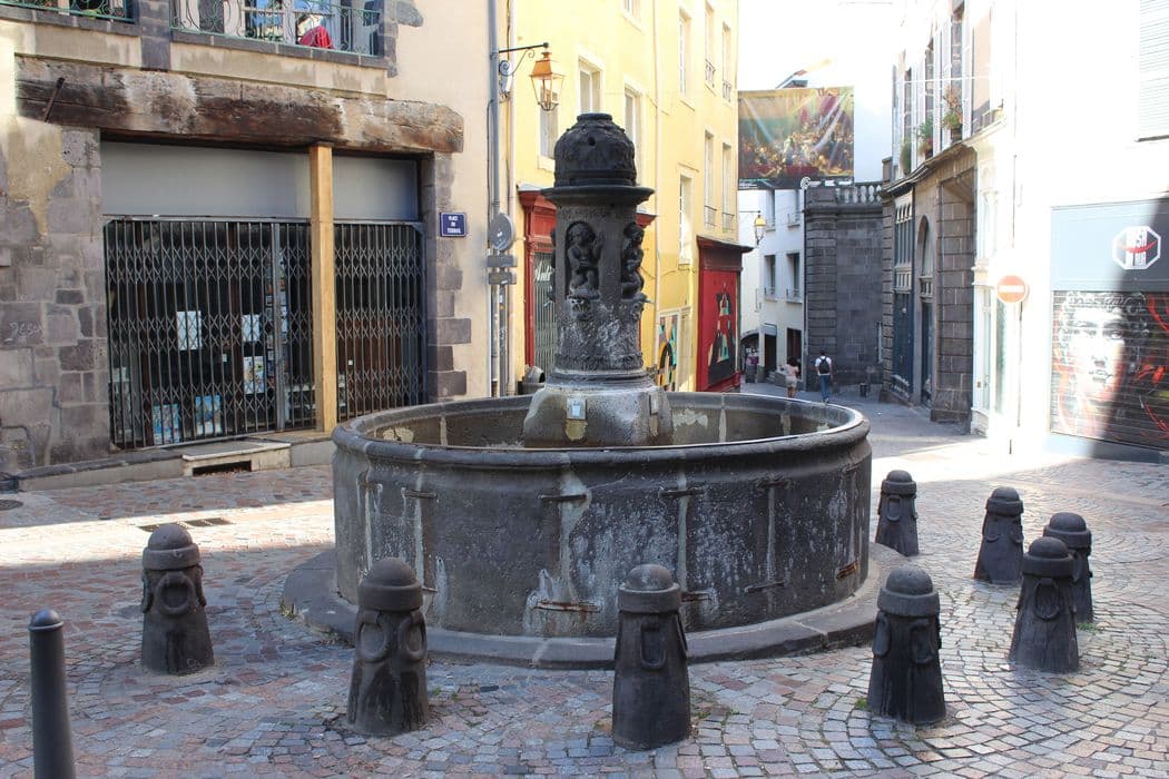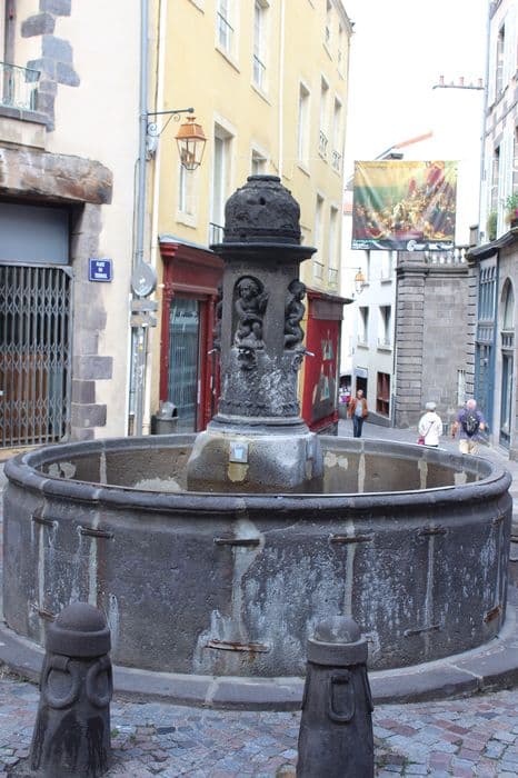 Le Terrail était un lieu de passage très fréquenté au Moyen-Age, tirant son nom d'un marché aux céramiques, la "terraille", qui s'y tenait régulièrement. En 1598, Etienne de la Barge proposa de financer la construction d'une fontaine. Un traité fut passé, mais le projet ne fut pas exécuté. En 1602, une fontaine fut édifiée, puis remaniée en 1684. La fontaine comporte un bassin circulaire et un fût central. Le bassin est décoré au blason de la ville dans une couronne de feuillages et de la devise de l'Auvergne sur une banderolle. Au-dessous de l'écusson se trouvait le millésime dont il ne reste que deux chiffres (16). Le fût central repose sur une pierre d'assise carrée et est terminé par une demi-sphère couverte d'écailles imbriquées. Quatre niches ont été creusées à la partie supérieure, abritant quatre enfants nus représentant les génies des eaux. Ils sont assis sur des dauphins et trois d'entre eux ont chacun un pied sur un escargot. Les têtes des dauphins, d'où jaillissent les jets d'eau, reposent sur des coquillages.