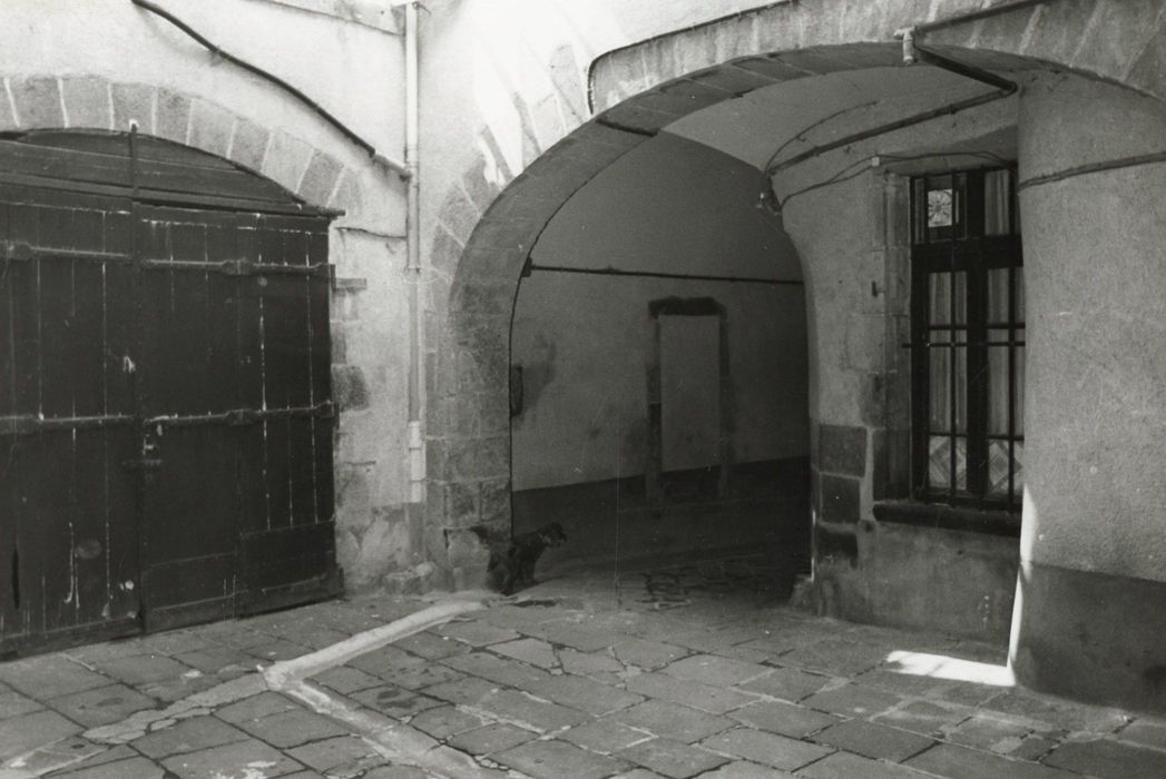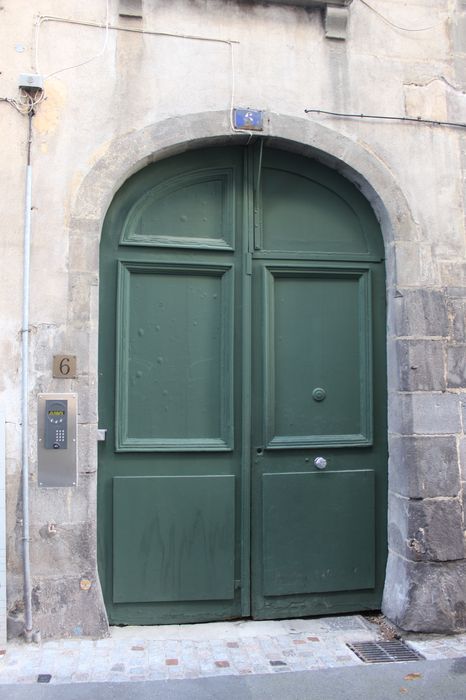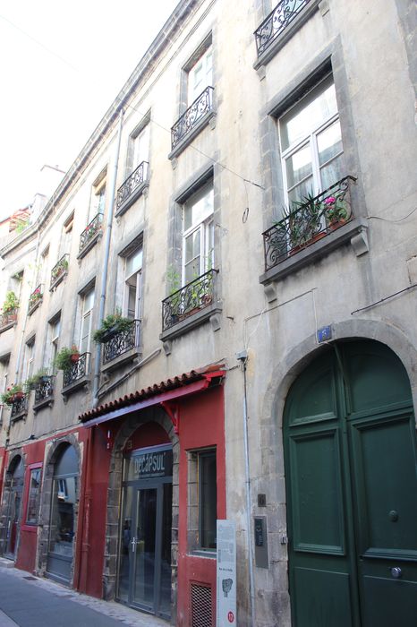 Il s'agit d'un bâtiment médiéval retouché de 1608 à 1613, avec une façade du 18e siècle. La cour de cet immeuble est l'une des plus intéressantes cours de la fin de la Renaissance à Clermont, et témoigne de l'élégance atteinte par les artisans auvergnats dans les détails d'architecture et de sculpture à cette époque (portail avec fronton triangulaire, arc ouvrant sur le passage, chambranles des fenêtres, cartouches, agrafes). Tourelle d'angle circulaire sur trompe concave en éventail apparaillée en panache. La clef de l'arc de front est ornée d'une sorte de Bacchus à la face épanouie et à la chevelure symbolisée par des pampres. Ce claveau porte la date de 1605. Il est surmonté d'un superbe cartouche composé d'un miroir central convexe, entouré de cuirs entrelacés. Ce miroir est posé sur une tête orientale avec plumes et moustaches, et surmonté d'un angelots joufflu à la chevelure bouclée.
